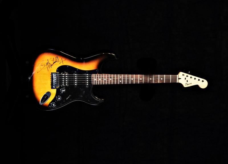 DescriptionA Fender Squier Bullet Stratocaster brown sunburst electric guitar autographed by Poison's lead singer, Bret Michaels. Michaels performed on October 14, 2016, at the Arkansas State Fair. The guitar is part of Old State House Museum Barton Coliseum's Concert Collection.Status