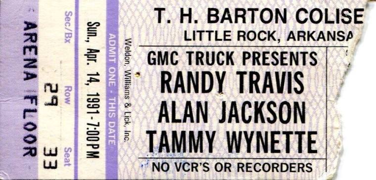Ticket Stub, Randy Travis, Alan Jackson & Tammy Wynette - Barton Coliseum