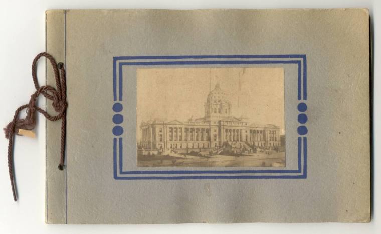 DescriptionSoft-bound, light blue book tied with brown string. There is a black and white photograph of the proposed State Capitol on cover. The inside is filled with photos of the members of the Arkansas House of Representatives of 1907. Pages are black paper, photographs are black and white with white ink underneath. Names and towns included. 16 pages. "Photographs by Rayburn/Little Rock, Ark."