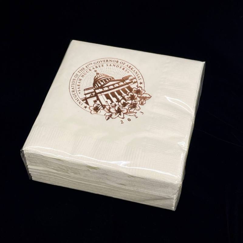 DescriptionPackage of napkins from the 2023 inauguration of Sarah Huckabee Sanders as the 47th Governor of Arkansas.Status
