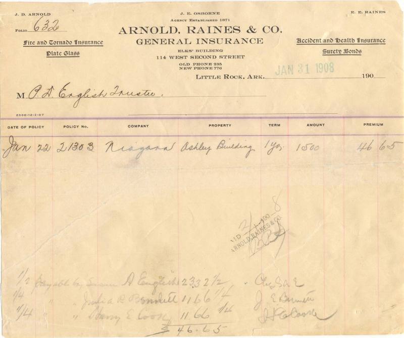 Arnold Raines & Co. was established in 1871. It was located in the Elks Bldg. on 114 West 2nd St. in Little Rock.