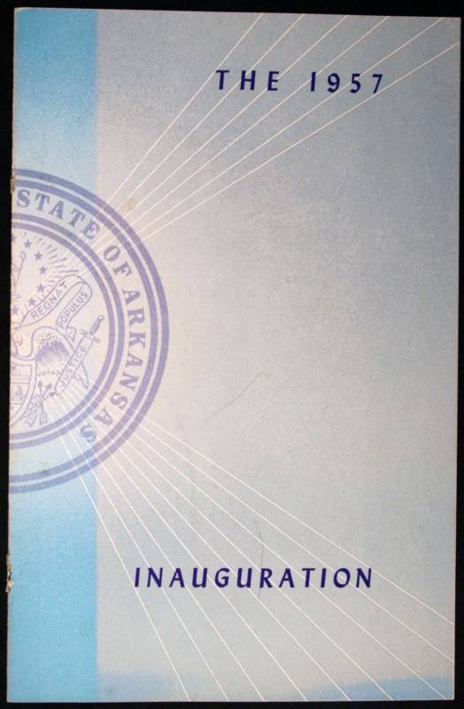 DescriptionA 1957 Faubus Inauguration Program detailing the events of the day and the members of the 61st General Assembly. It also includes those elected to offices of Governor, Lt. Governor, Secretary of State, Secretary of the Treasury, Auditor of the State, Attorney General, and Commissioner of State Lands.