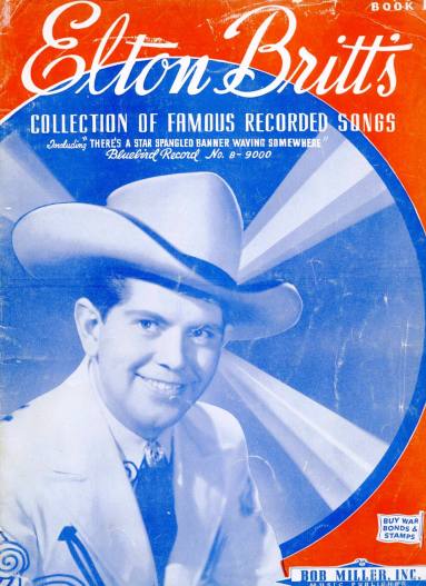 Description"Yodel Songs" LP record on RCA -Victor label of Elton Britt. The front cover displays a black and white photo of Elton Britt wearing cowboy attire and cowboy boots sitting on a white fictitious fence playing the guitar. Elton Britt is in black lettering along with the song titles while Yodel Songs is in red. The background is light green. The back cover is a short biography of Britt in black lettering with a black and white photo of Britt on a white background.