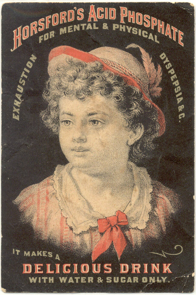 DescriptionAdvertisement for Horsford's Acid Phosphate. Sold at McAlmont & Gibson Chemists and Druggists at N.E. corner of Main and Markham St. in Little Rock, Arkansas.Black card with image of a child. Red and white lettering. "Horsford's Acid Phosphate Exhaustion for mental & physical dyspepsia & co. It makes a delicious drink with water and sugar only." Description and ingredients on the back.