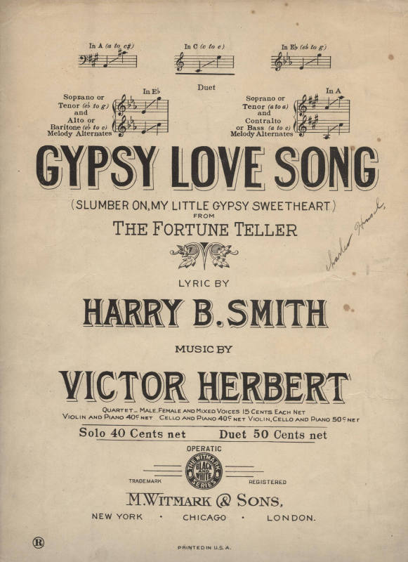 Sheet Music, "Gypsy Love Song"