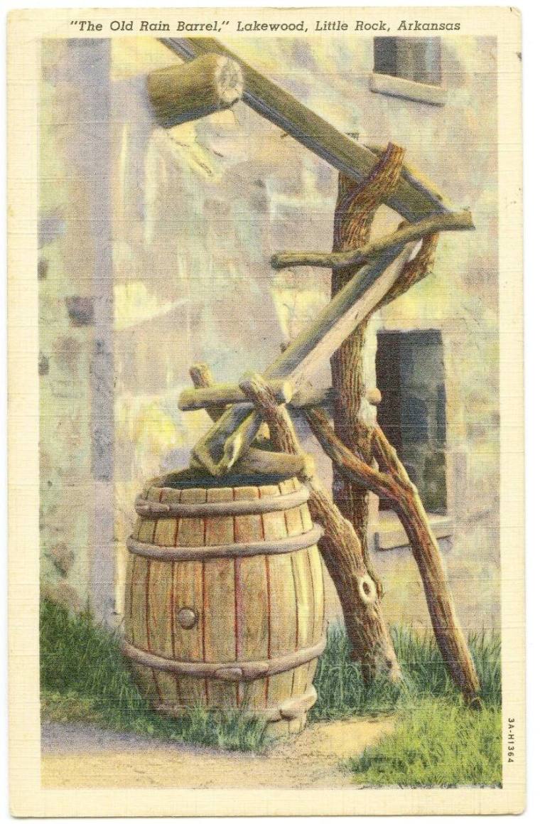 Postcard, The Old Rain Barrel in the Lakewood Subdivision of Little Rock