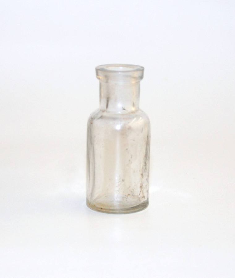 DescriptionGlass medicine bottle found on the grounds of the Old State House. Small, clear, oval body. Probably used by medical students when the medical school was housed at the Old State House.