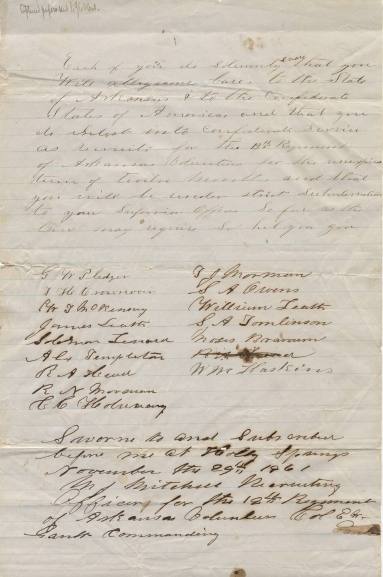 DescriptionAddress by Brig. Gen. E.W. Gantt. Written by Gantt while he was a prisoner of war. Gantt supported secession and became the colonel of the Twelfth Arkansas Infantry Regiment, mustering around Arkadelphia (Clark County). Following his surrender near New Madrid, Missouri, Gantt was imprisoned at Fort Warren, Massachusetts where he stayed until his negotiated release in August 1862. Confederate leaders did not offer Gantt another leadership role after his imprisonment, and he surrendered to General Grant in 1863. After changing sides, he was used to boost morale for northern soldiers for the rest of the war.Printed pamplet, twenty pages. First published October 7, 1863 at Little Rock, Arkansas.