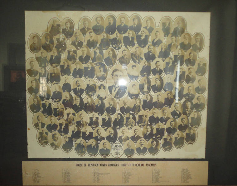 DescriptionA composite photograph depicting the 35th House of Representatives of the State of Arkansas in 1905. The black and white photograph features individual images of the House arranged around a larger image of the Speaker. The images are situated on a black and white background with text stating "House of Representatives", "Thirty-Fifth General Assembly", and "1905" along with a list of members. The photographs were taken by "Harris Fotografer" in Little Rock, Arkansas.